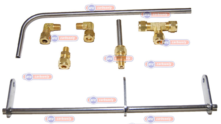 Connecting linkage & fuel line forOffenhauser mainfold dual 1bl Rochester carburetors model B base size. |